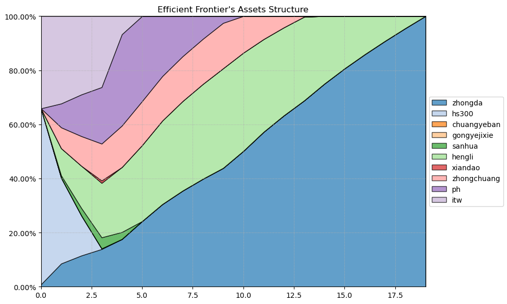 有效边界也差不多,公司始终占有一席之地。(注:占比越高越好)