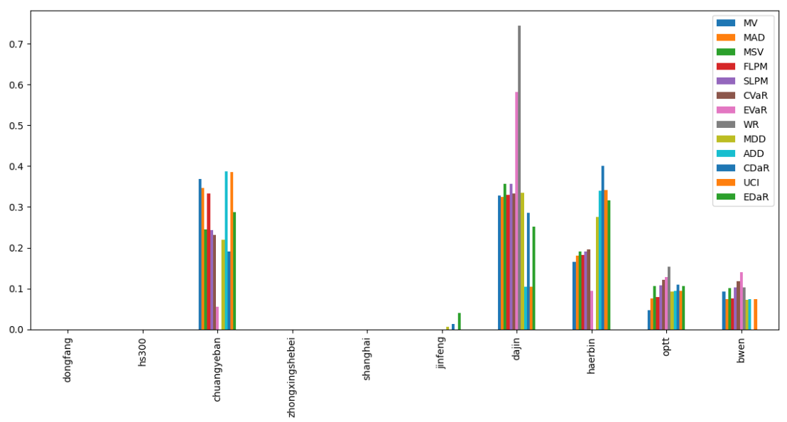 如果换成其他约束,系统给的配置比例也大同小异,基本是在大金重工和港股的哈尔滨电气之间做取舍了。(注:占比越高越好)