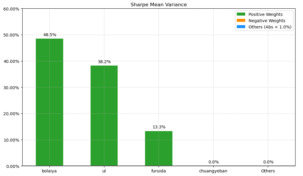 按最高夏普比率配置的话,系统给的权重为48.5%,第二权重给了美股的联合利华占比38.2%。