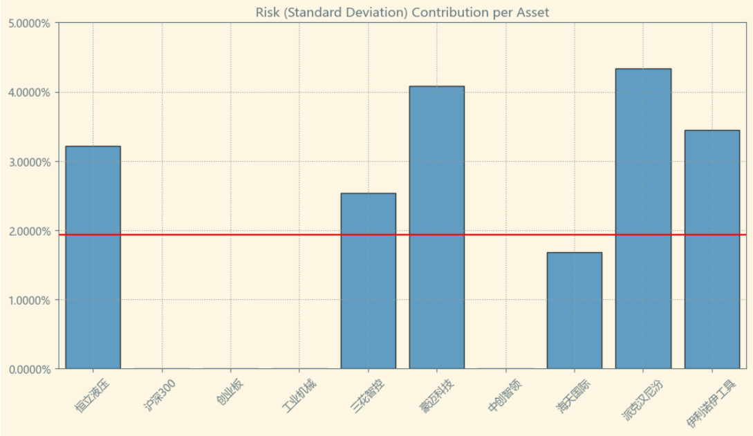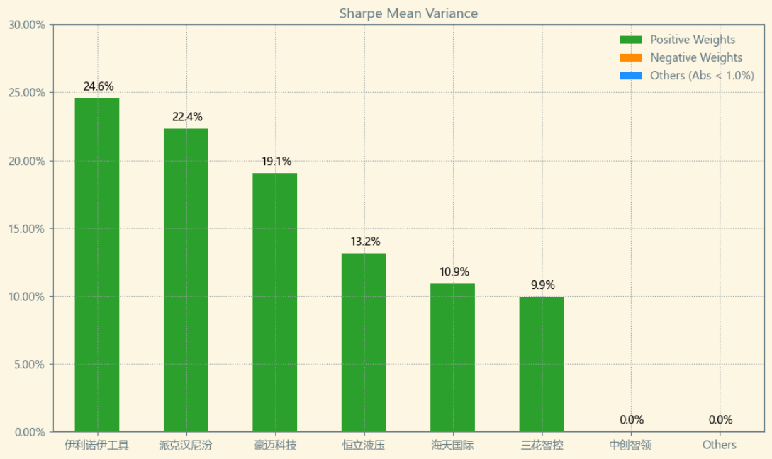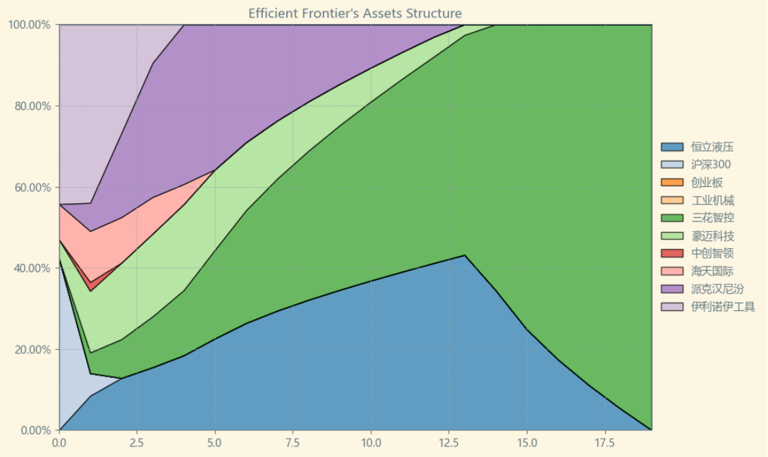 如果换成其他约束,系统给的配置比例也大同小异,基本是在豪迈科技和美股的派克汉尼汾之间做取舍了。