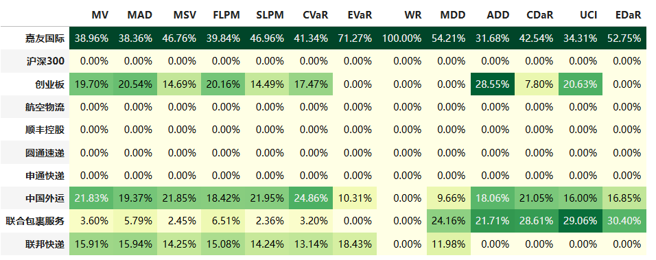 如果换成其他约束,系统给的配置比例也大同小异,基本是在公司和中国外运之间做取舍了。
