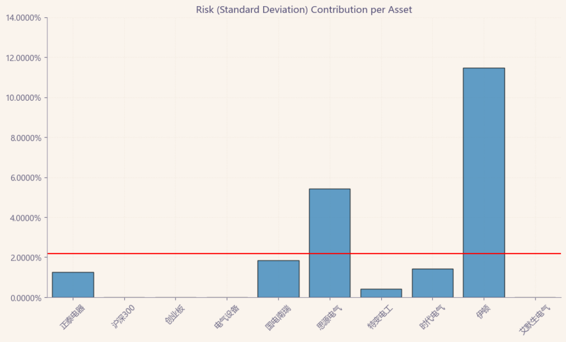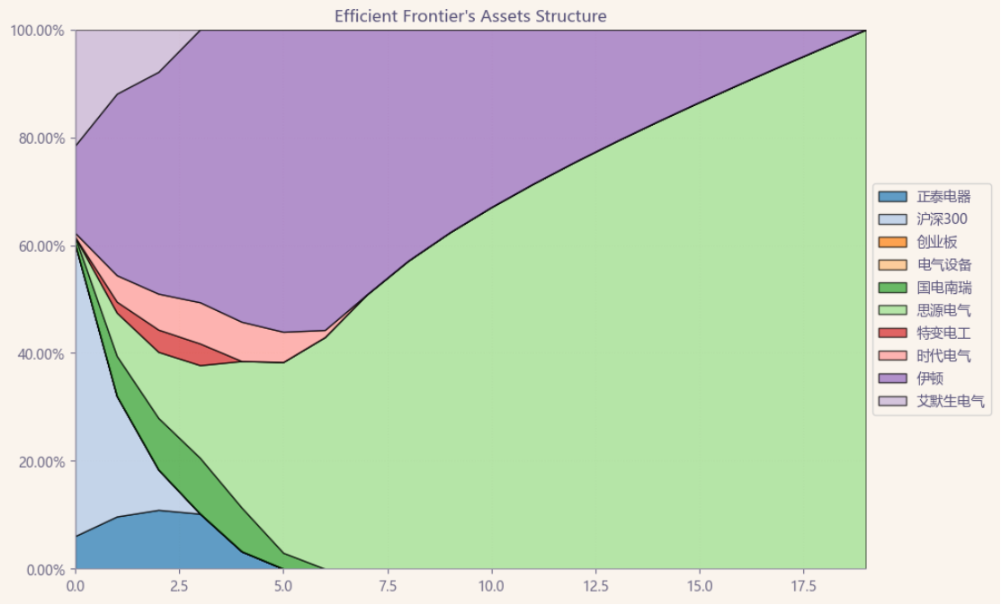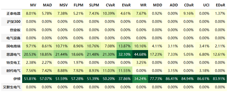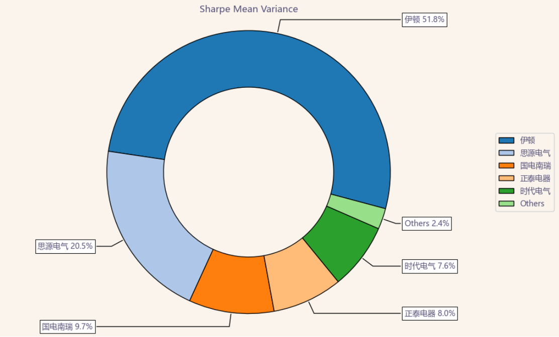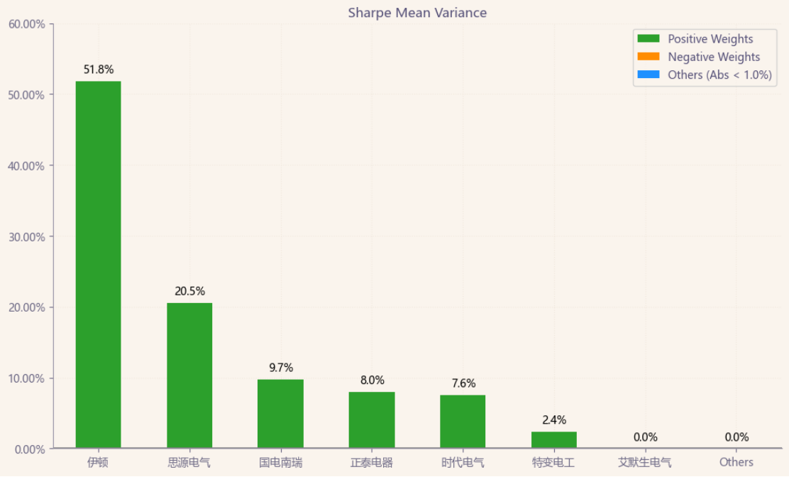 按最高夏普比率配置的话,系统给的权重为8.0%,最高权重给了伊顿占比51.8%。