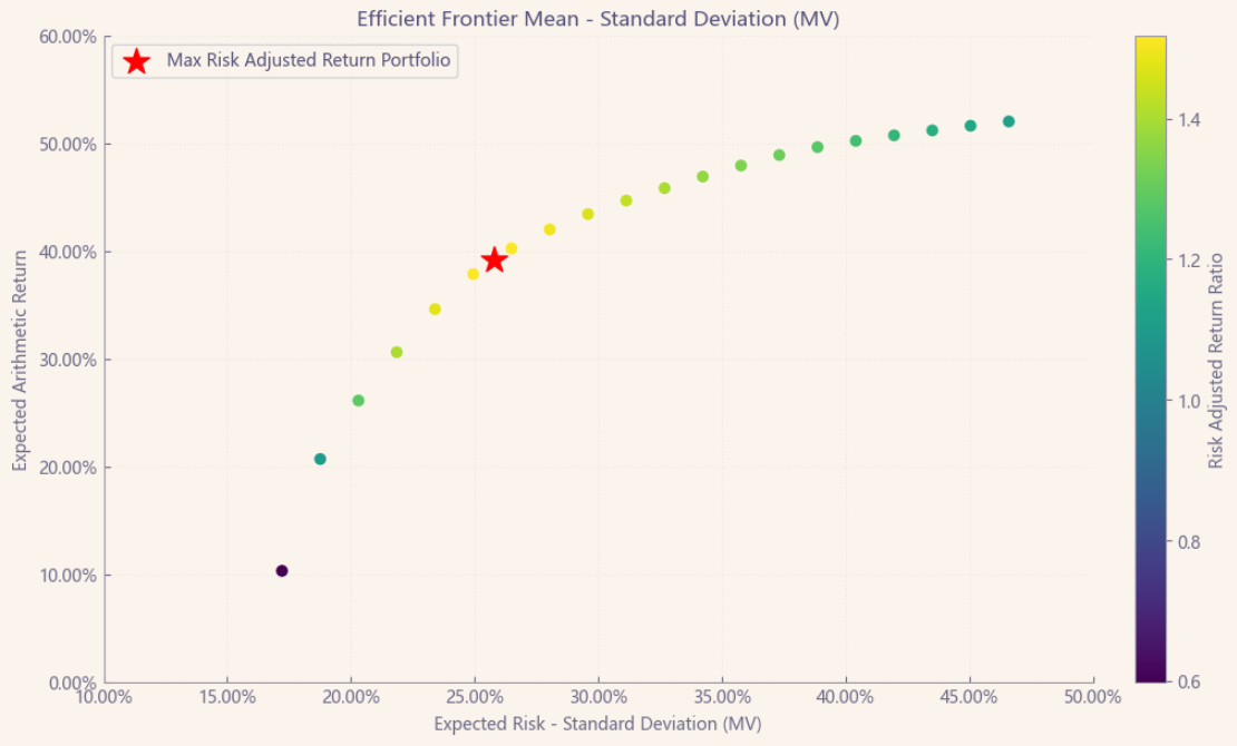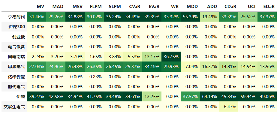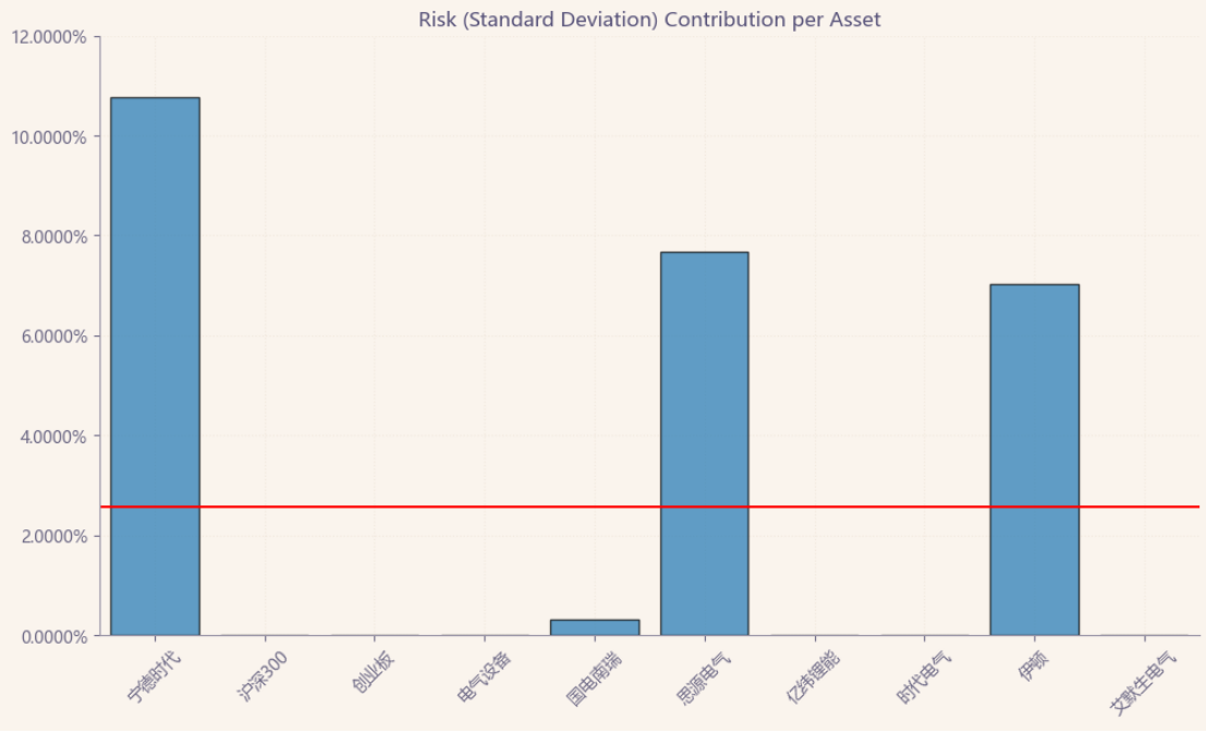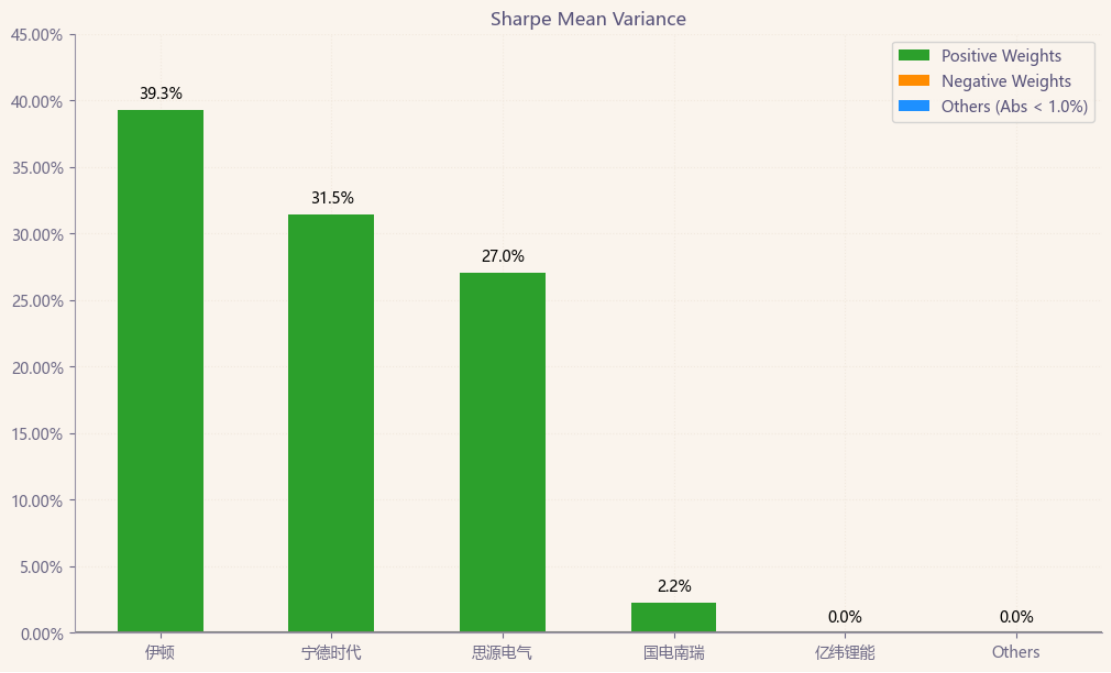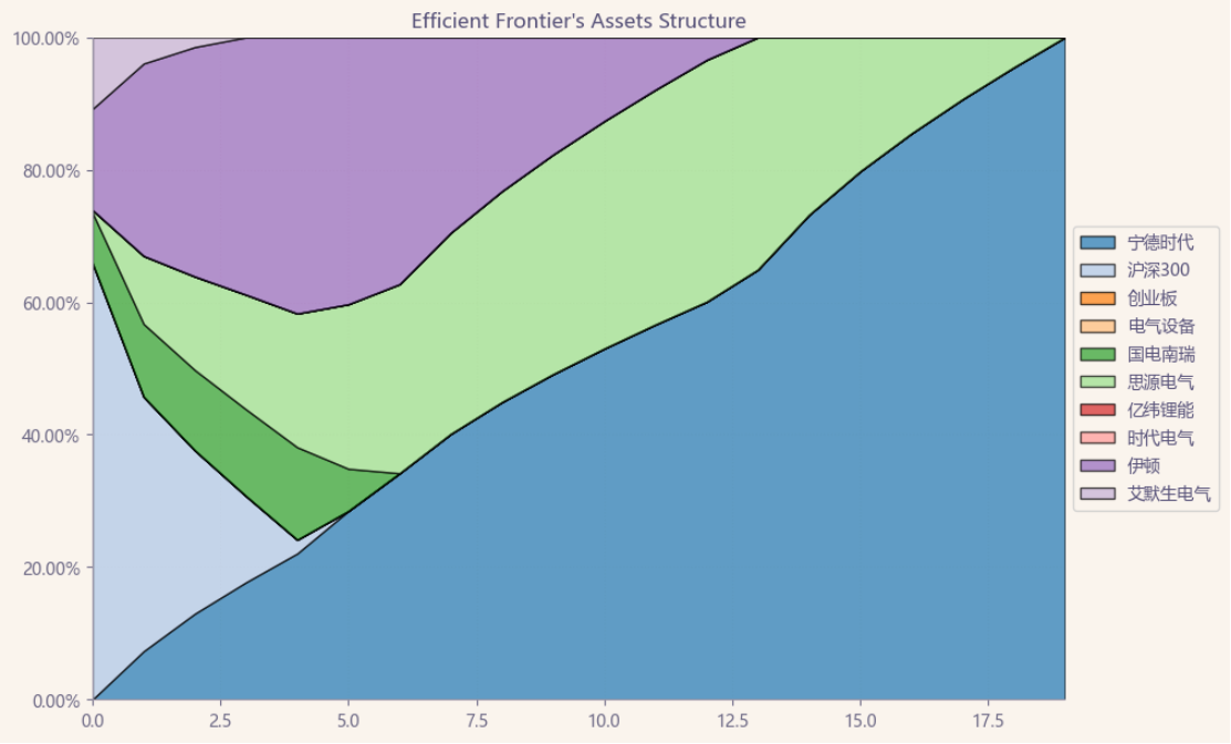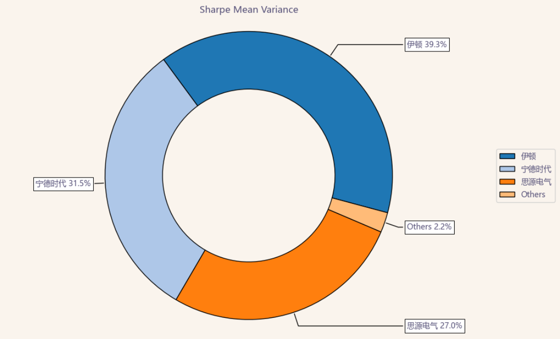 按最高夏普比率配置的话,系统给的权重为31.5%,最高权重给了伊顿占比39.3%。