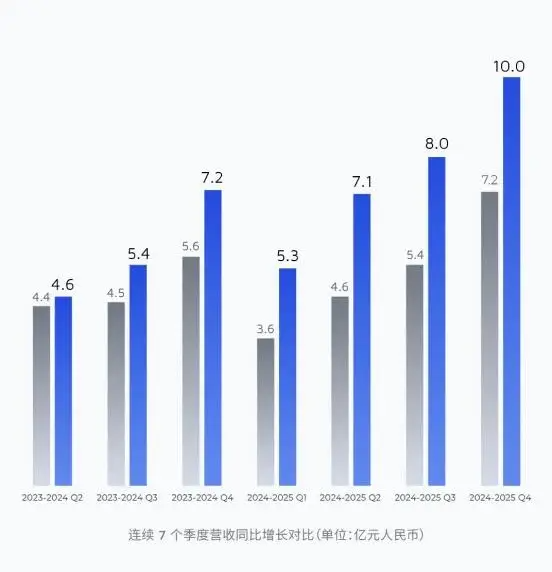 全年营收30.3亿元,同比增长45.8%,连续七个季度实现同比增长。这意味着什么?从2024年Q2到2025年Q4,禾赛的营收曲线就没断过向上的势头,这在当前的车供应链里并不多见。
