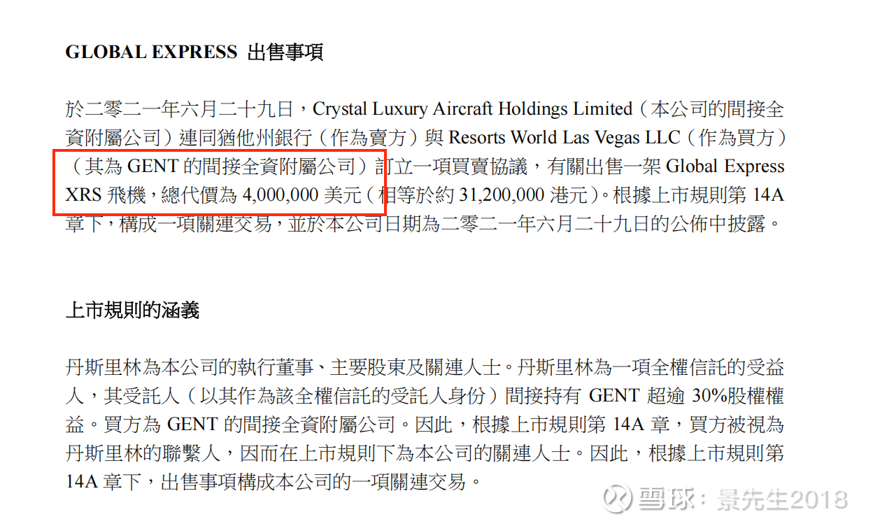 大概是2014年云顶香港从林国泰以0.38亿美金买走