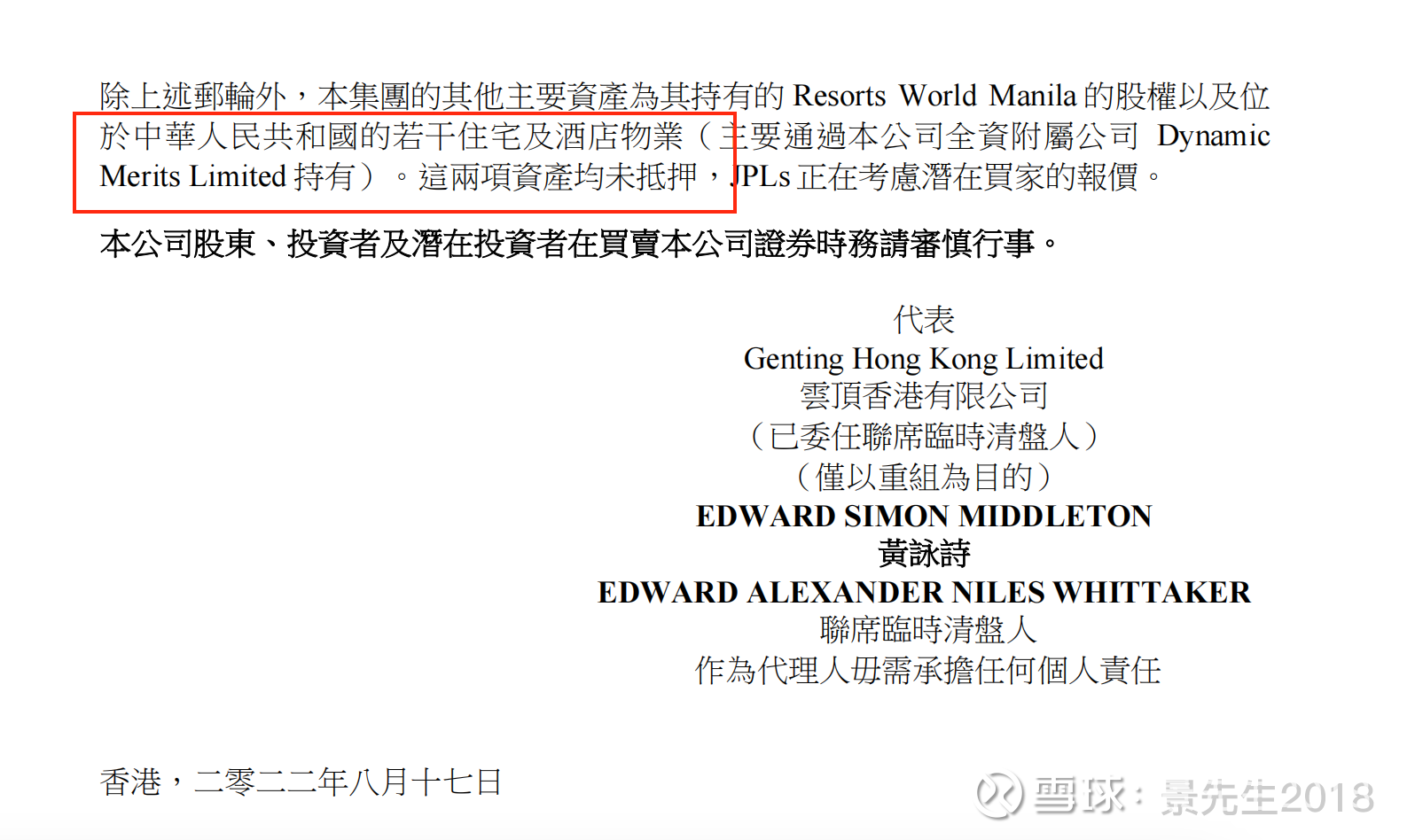 1、为何云顶香港母公司的债权分配都结束了,菲律宾赌场还能迟迟未交易?