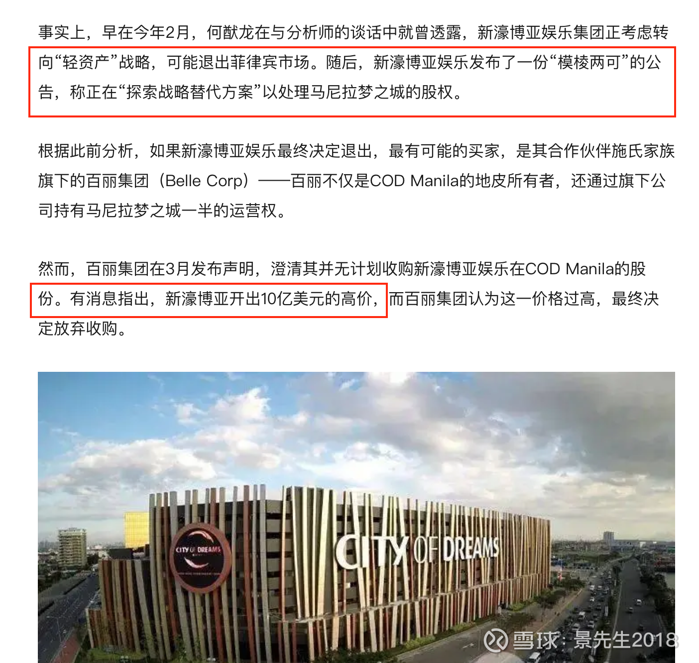云顶马尼拉因为“某些特定的条件”尚未交易,隔壁新濠马尼拉已经公开叫卖了,意外的是,云顶新加坡竟然也参与其中,以下是竟标详情: