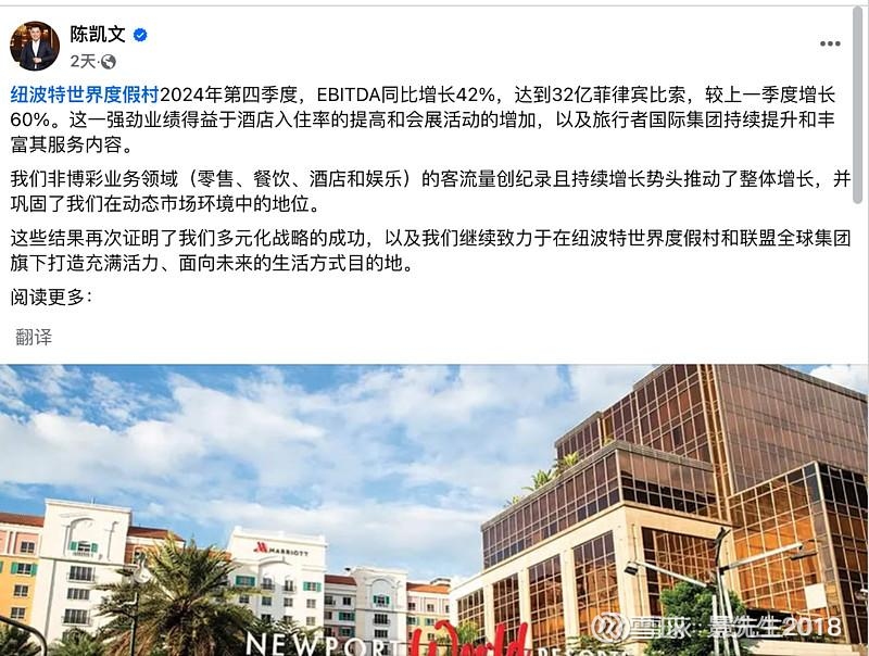 我们知道,菲律宾一共有四大赌场,云顶和新濠分别占了两个