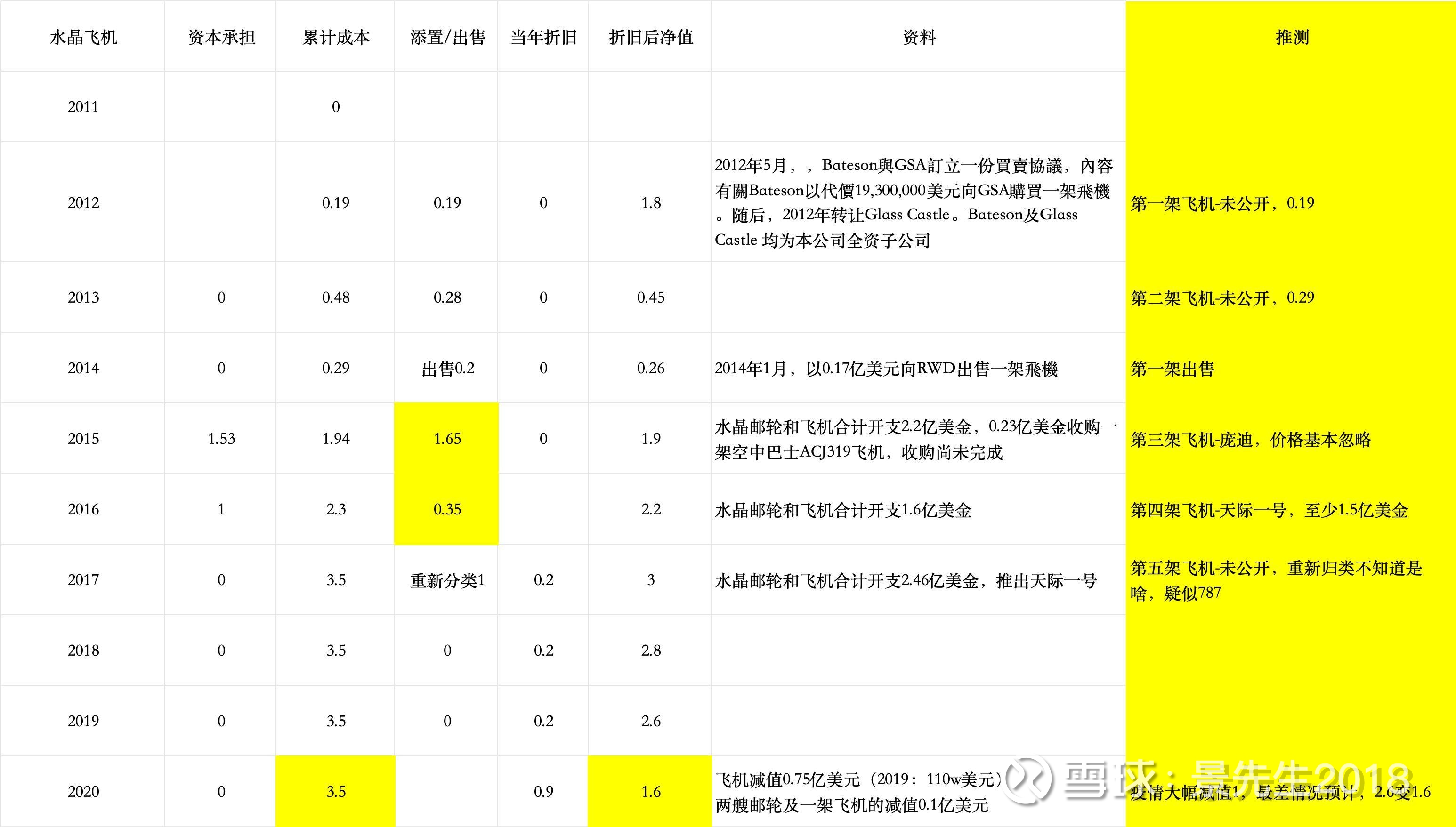 1、2013年收购水晶之前就已经有投入0.45亿美金两架飞机了