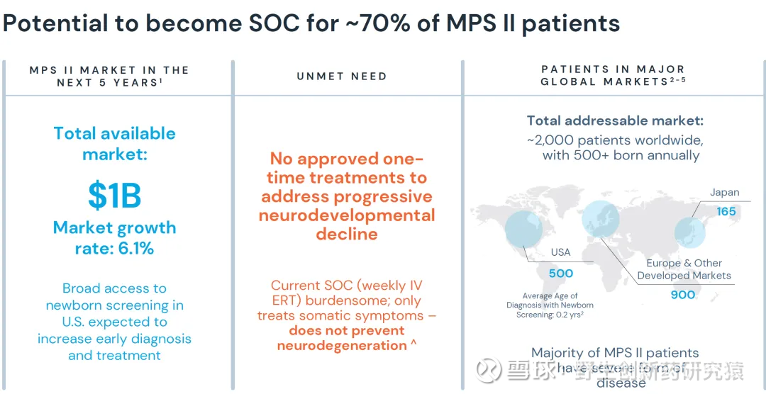 最近首个针对Mucopolysaccharidosis II(MPS II,亨特综合征)的基因疗法RGX-121即将获FDA批准上市,PDUFA日期是 2026年2月8日,该产品来自Regenxbio(代码:RGNX)。因为Regenxbio市值较小且今年催化比较多,因此市场很是关注RGX-121在2月初能不能获批。