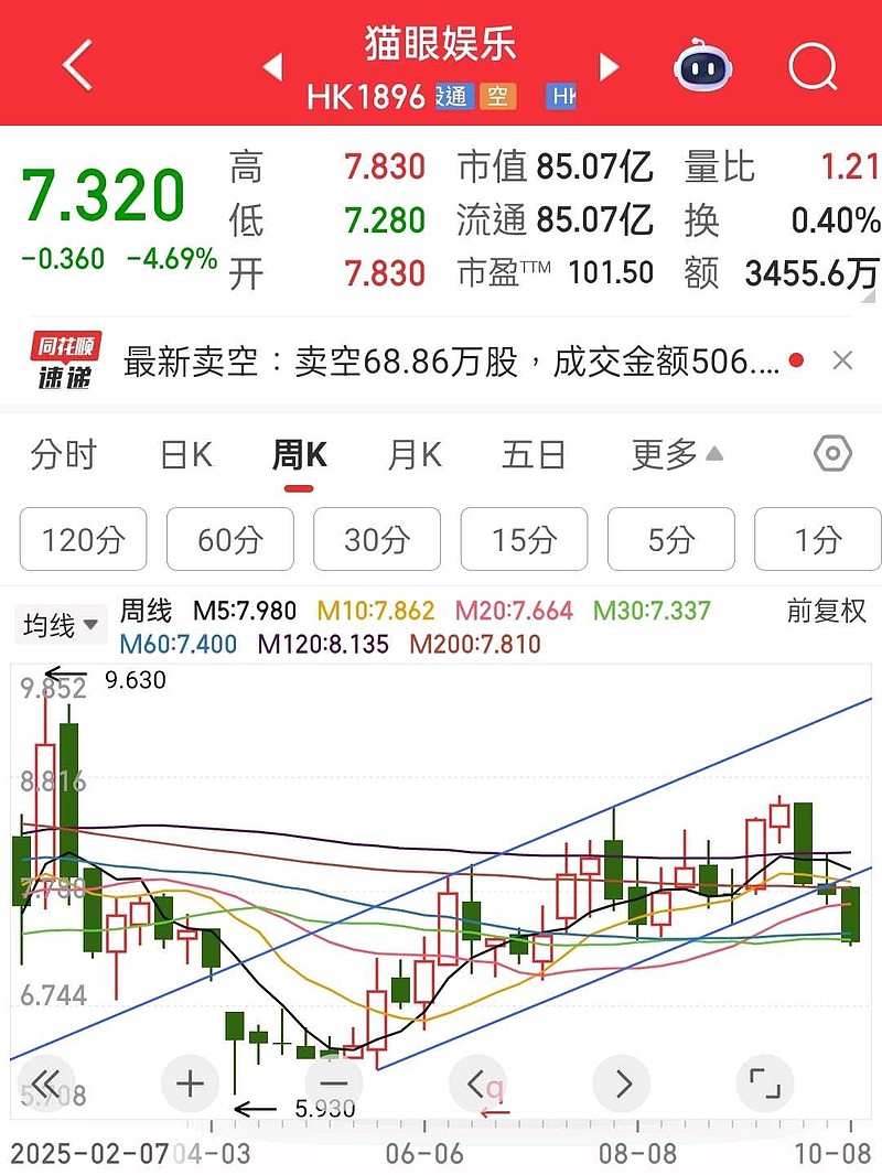 短期有点危险,但下降空间不多,长期看港股小市值热点股票碰到牛市随便翻番