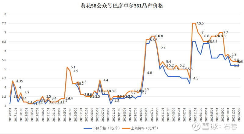 千粒重200以内、无划皮、无水锈的361价格企稳。但是稍微低端一点的千粒重220左右、轻微划皮或水锈361品种,价格从去年年末的5元下跌到现在的4-4.3元/斤。