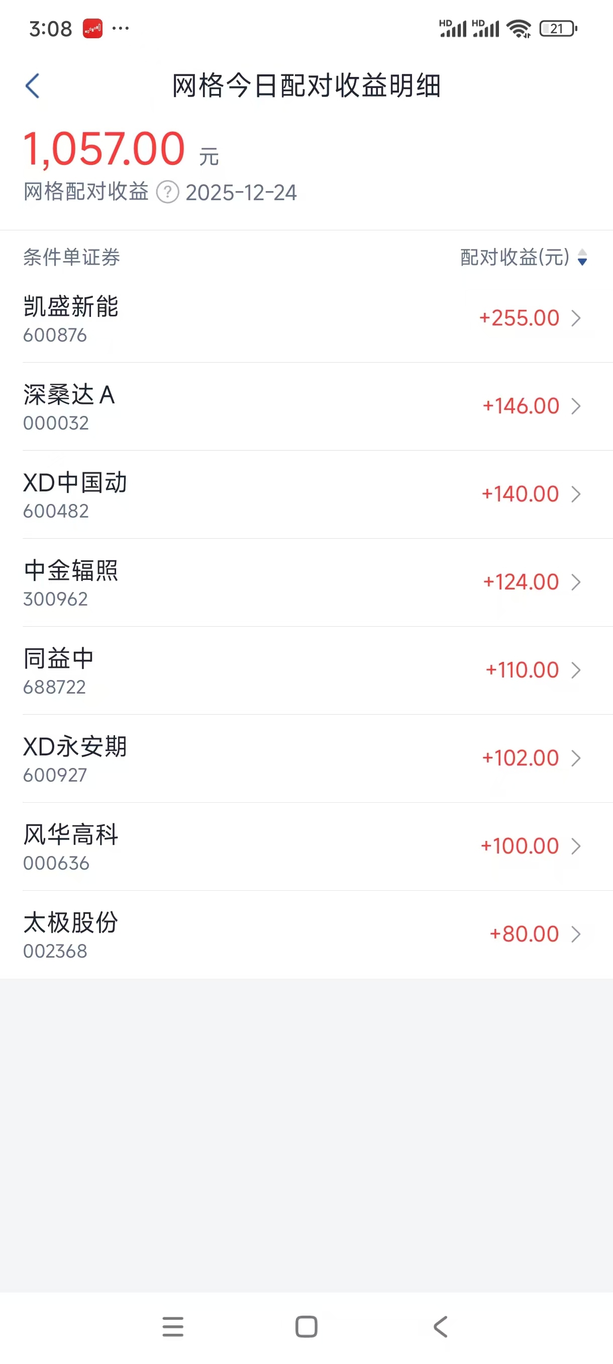 今日网格盈利1057元