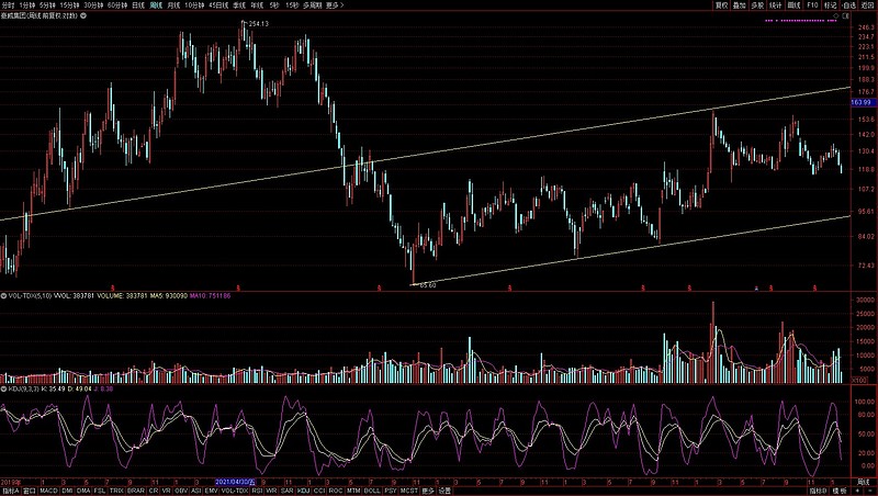 从豪威走势上看, 未来两个月, 其股价必将触碰过去三年多上升通道的下轨处, 目前看在 93元一线, 也就是其 H 股的发行价(折成人民币)。见下图。