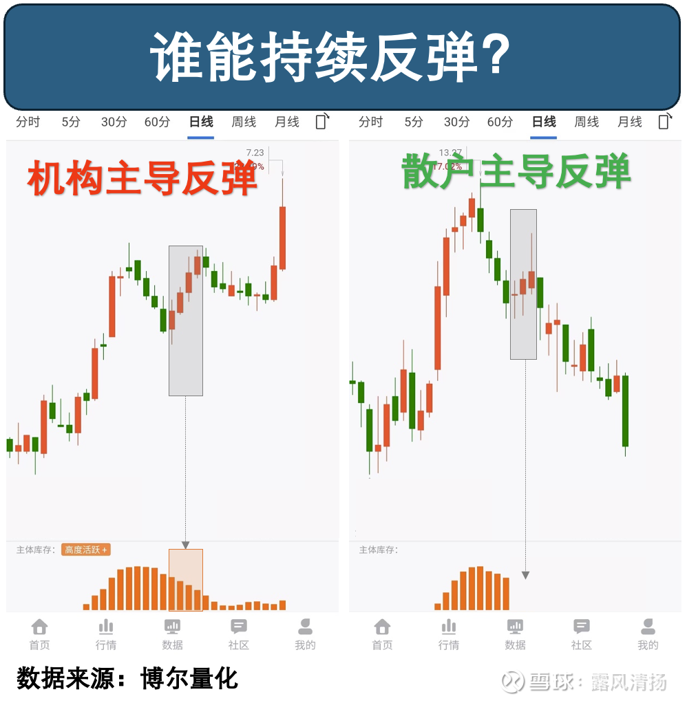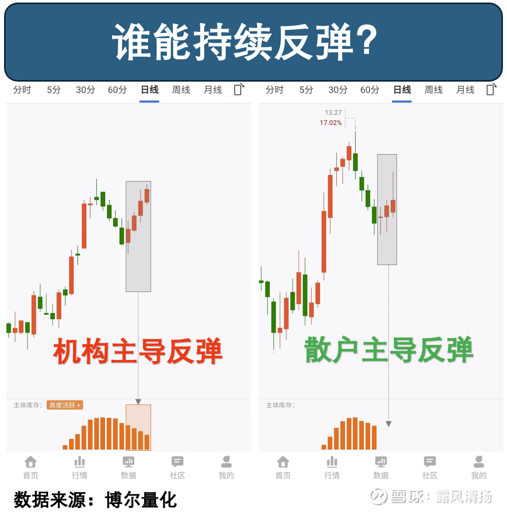 下面这组对比图极具说服力(见下图):两只同样处于反弹周期的股票,仅因机构参与度不同,后续走势天壤之别。左边个股反弹时有明显大资金介入痕迹,右边则始终是散户在自娱自乐。