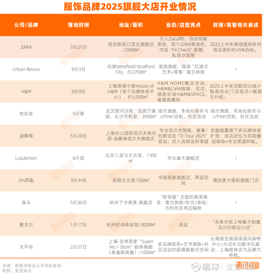 壹览商业统计快时尚品牌、国际运动品牌、国内女装/大众服饰的典型样本发现,除了开头提到的H&M,开旗舰店已经成了服饰品牌的一致动作。