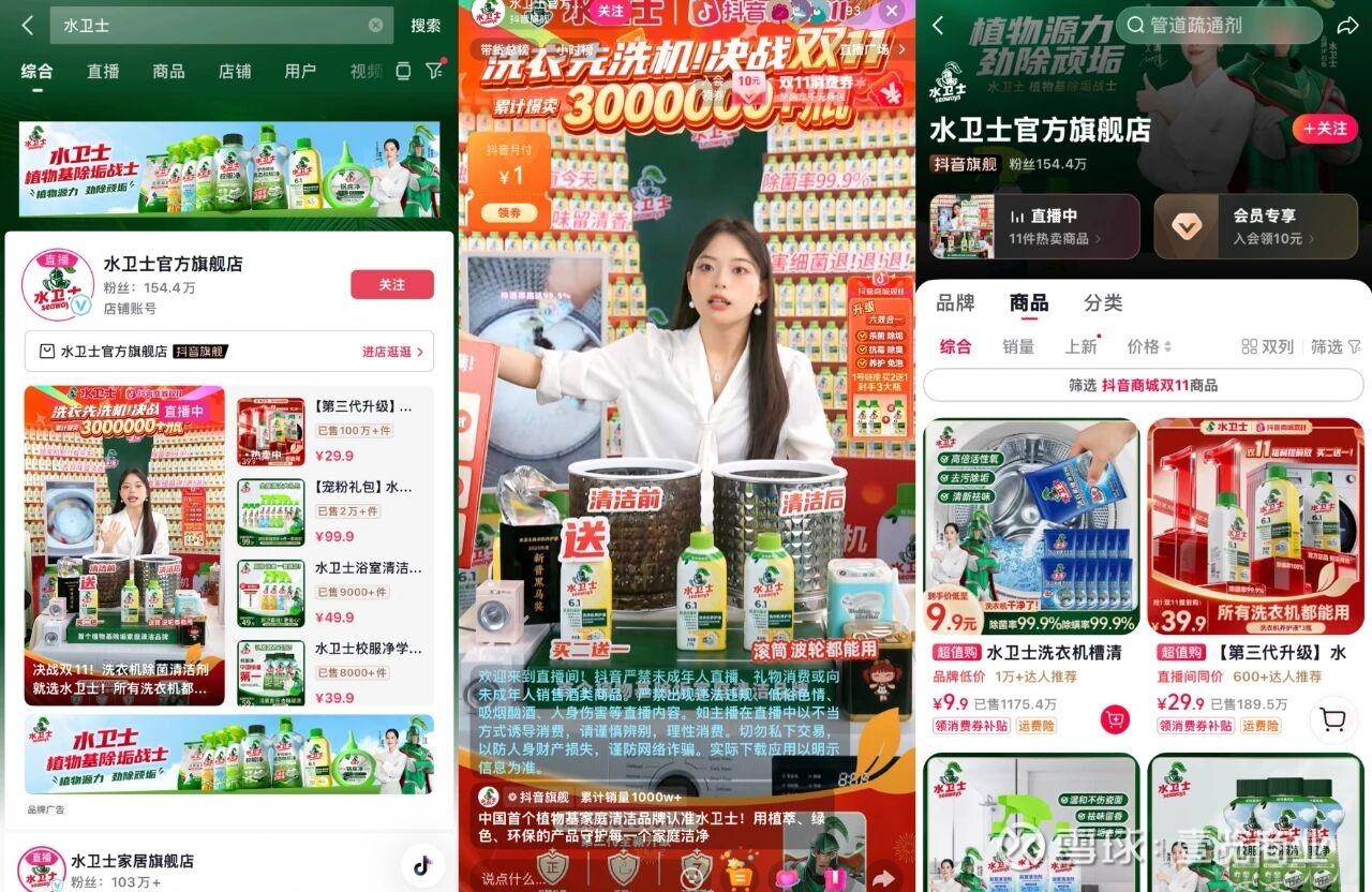 “水卫士”,这一创立于2020年的国货品牌,在这场家清升级和内容电商崛起的行业演进中崭露头角。它以“植物基除垢”为产品理念,通过可视化内容在直播间讲述“干净”和“绿色”的故事。短短几年,在内容、场景与产品的持续投入下,水卫士从行业新秀迅速成长为抖音电商家清赛道的代表品牌。