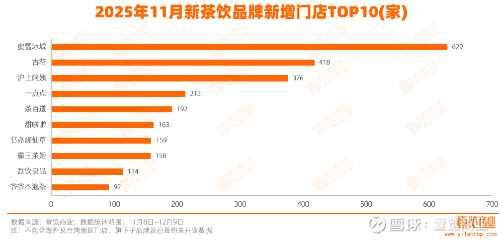 从净增门店来看,11月共有19个品牌实现正增长。其中,沪上阿姨10月、11月都是净增门店数量最多的品牌,10月净增271家,11月净增231家;古茗、一点点也保持着可观的增长,分别净增142家、190家。