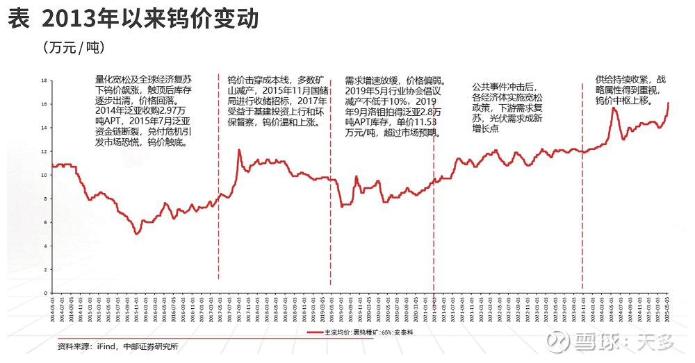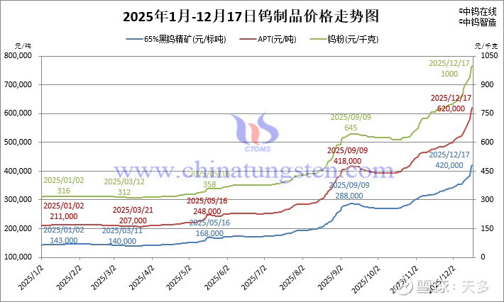 由上图可看出,钨价格长期走牛态势,2025年由于供给减少,需求增加,造成今年钨价格涨势较大。