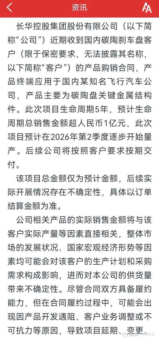 主要看中的是公司在碳陶刹车盘领域的布局。公司和金博股份达成战略合作,提供碳陶刹车系统专用合头及紧固件套装,一期具有年配套20万件的生产能力。根据网上的数据预测,中国碳陶盘市场规模2025年将达79亿元,2030年有望增至215亿元,是个比较广阔的蓝海市场。