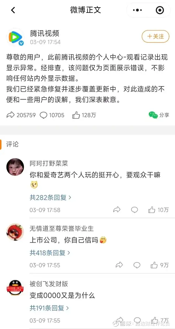 (腾讯视频官微回应)