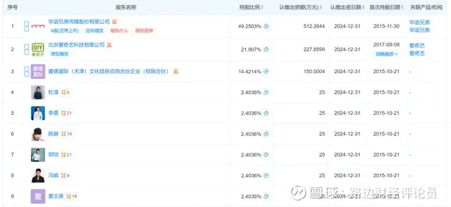 股权结构显示,爱奇艺关联公司北京爱奇艺科技有限公司持有浩瀚娱乐21.907%的股权,既是投资方,也是播出平台,同时与腾讯视频形成深度绑定。