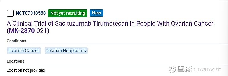 $科伦药业(SZ002422)$ $科伦博泰生物-B(06990)$ 2026-01-06,默沙东在clinicaltrials官网上登记了skb264/MK2870第16个国际三期临床,适应症为初治晚期(HRD 阴性)卵巢癌患者在一线铂类化疗后的维持治疗,预计入组900人,临床编码为MK-2870-021。