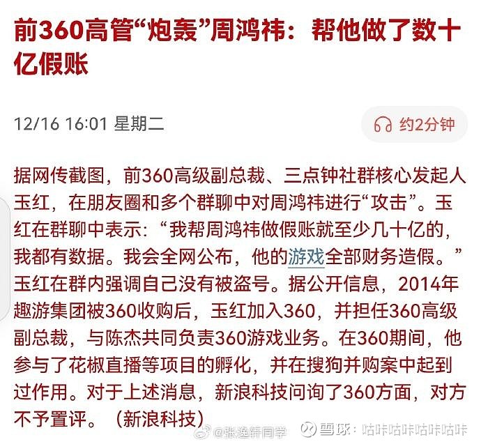 前360高管“炮轰”周鸿祎:帮他做了数十亿假账…