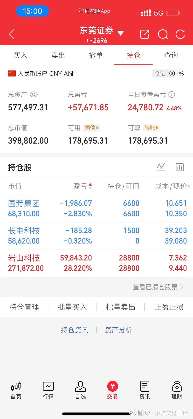目前账户57.7万