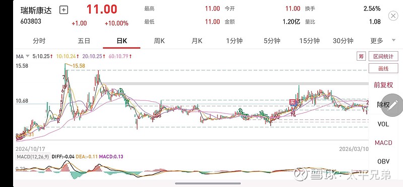 $瑞斯康达(SH603803)$ 算力+封装概念。下跌反弹类的票。波段高点有过创新高的动作,第一步建仓完成,成本大概在9.58左右。目前第一目标位以及第二目标位已经走完,目前正在走第三段。下跌到前期横盘区域止跌,还处于低位阶段。@卢克-老鱼 卢大帮我看看。谢谢