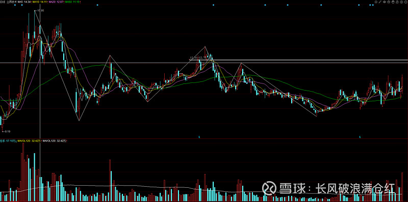 低点不再创新低,波段高点有创新高,第一步建仓完毕。目前已经走完第一个目标,主力建仓成本在11.5左右;
