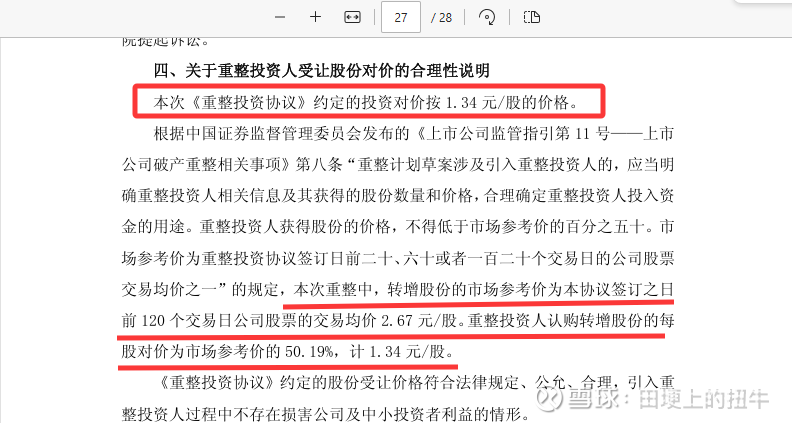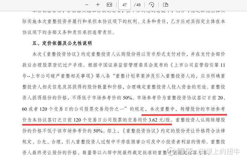 这个【附加条款】是ST中基《重整投资协议》所独有,【2025.03.14】颁布的【重整新规】即《上市公司监管指引第11号——上市公司破产重整相关事项》中,仅仅规定了【重整协议签署之日的定价原则和定价机制】,但并没有【要求或建议】在【重整受理日前】依旧【坚守】该【定价原则和定价机制】不变,所以,这个【二级市场交易均价补差条款】完全是ST中基和新业集团的【私下协商条款】,对其他公司不具有参考价值和指导意义。