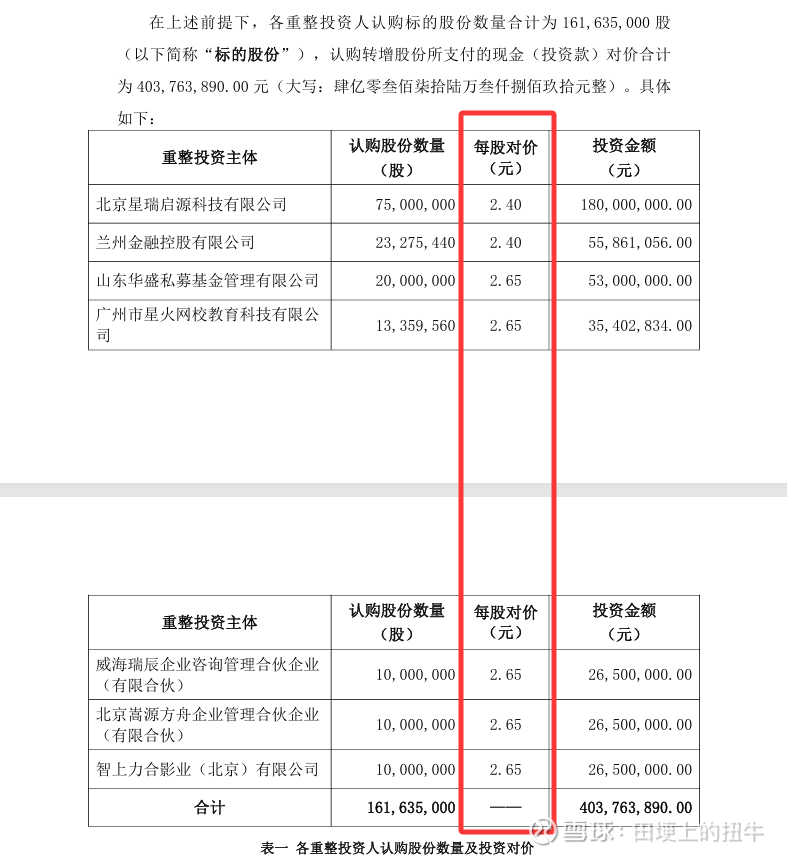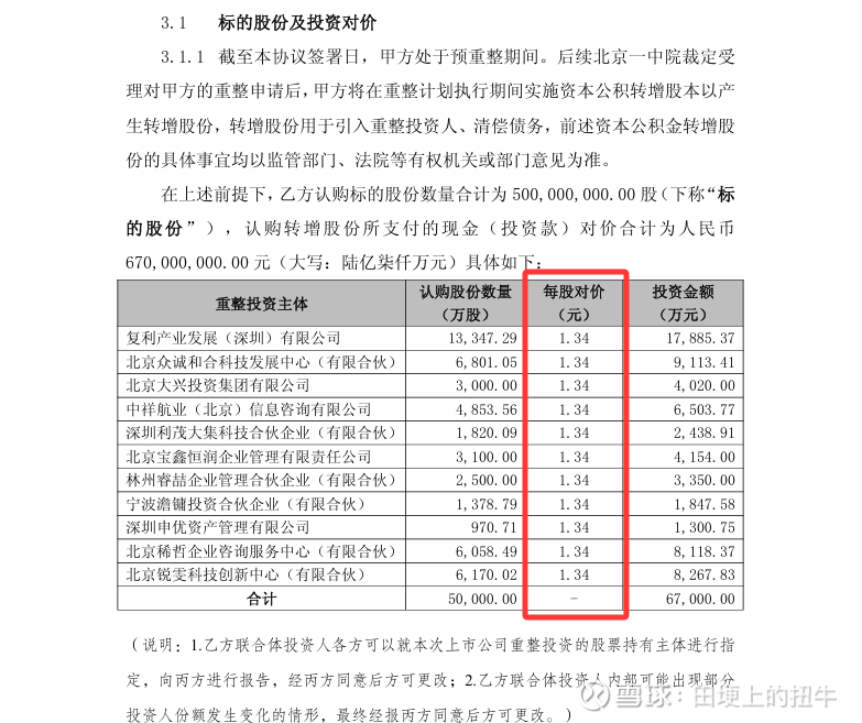 那我们再从其【定价机制】来比较,我选取了最新签署《重整投资协议》的4家重整股来做比较,分别是ST东时、ST新研、ST亚太和ST中基: