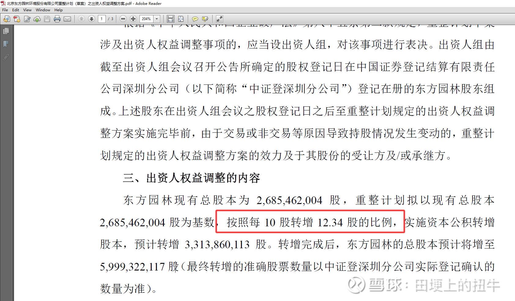 所以,单纯从《重整投资协议》中的【转增比例】和【受让价格】来看,ST中基和ST东园基本相近,而且ST中基的【转增比例】更低,【产投对价】相对值更高,也即【总股本转增更少,产投相对出价更高】。