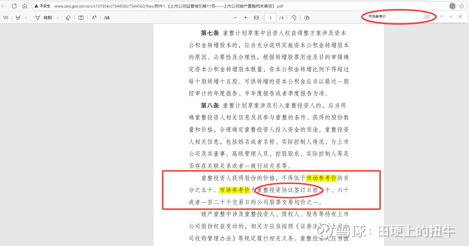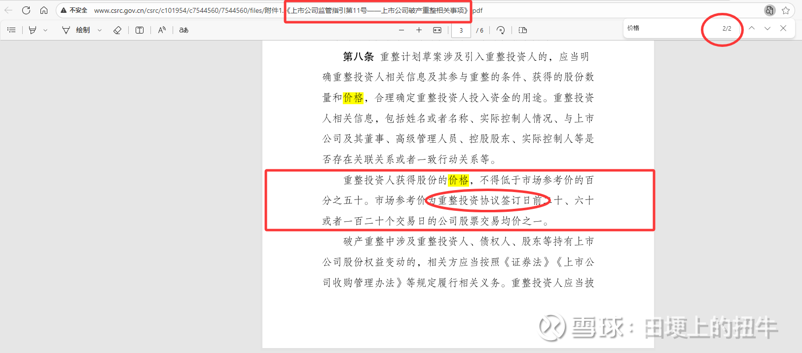 *《上市公司监管指引第11号——上市公司破产重整相关事项》仅有【4处】提价了【价格】和【市场参考价】,都在【第八条】*