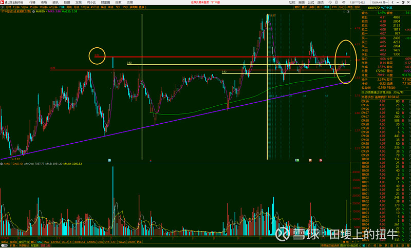 但要是对比ST中基元旦前的走势来说,又算强的,何况,今天的股价是【实打实的站上了4.00元】,在我的研判中,算是一次【突破】,希望本周能强势站稳,别趴下。