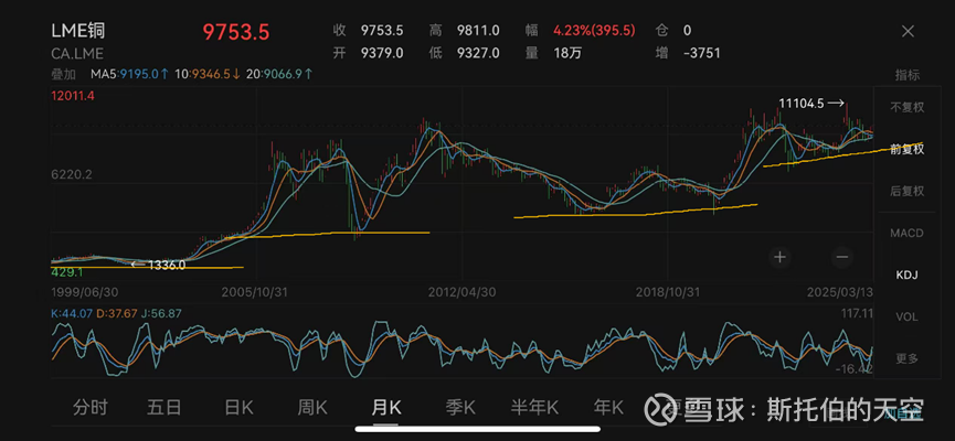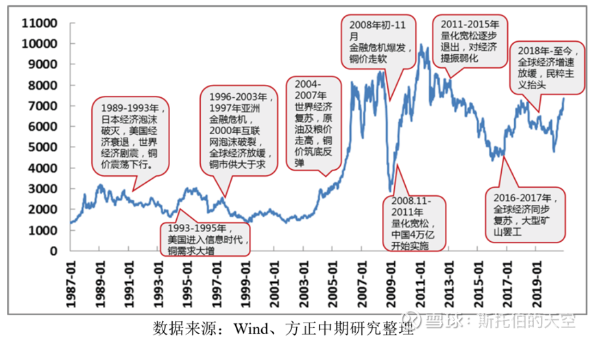 铜价的价格中枢,是不断的抬升的,呈周期性向上波动。