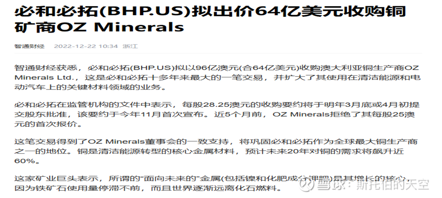 在产业界,全球都在抢铜矿,贴两个新闻吧,大家自行感受。