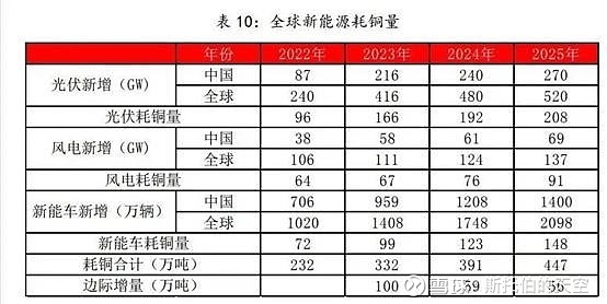 第一:是新能源的需求:包括锂电池、光伏、风电和储能系统等,这个是比较大的一个增长点,也是为什么你感觉房地产不太行之后铜价依旧会比较坚挺的一个原因,如下图。