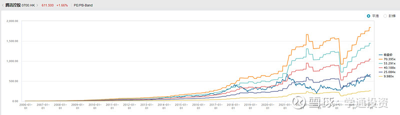 提到中国股市的“股王”,大多数投资人都会推腾讯、茅台、阿里、工行、平安、拼多多这种级别,因为能够被称为“股王”的公司,营收、利润这些硬指标要能够得上,比如说,1000亿上下的净利润,目前上市公司里面其实没几家,宁德时代这种顶级的制造业企业,也还要再增长几年才能达到。如果从市值角度看,$腾讯控股(00700)$ 腾讯控股目前55000亿港币市值,毫无疑问是中国上市公司里面最大的。从2004年上市至今,腾讯的股价涨幅超过1000倍,最近几年波动很大,2021年从700块跌到180块,目前又回到600元以上,现在这个位置,如何看待腾讯这家公司,如何看待目前的价格,今天我们就从商业模式、护城河、财务情况、业务情况、未来战略以及动态估值的角度为简单谈谈。