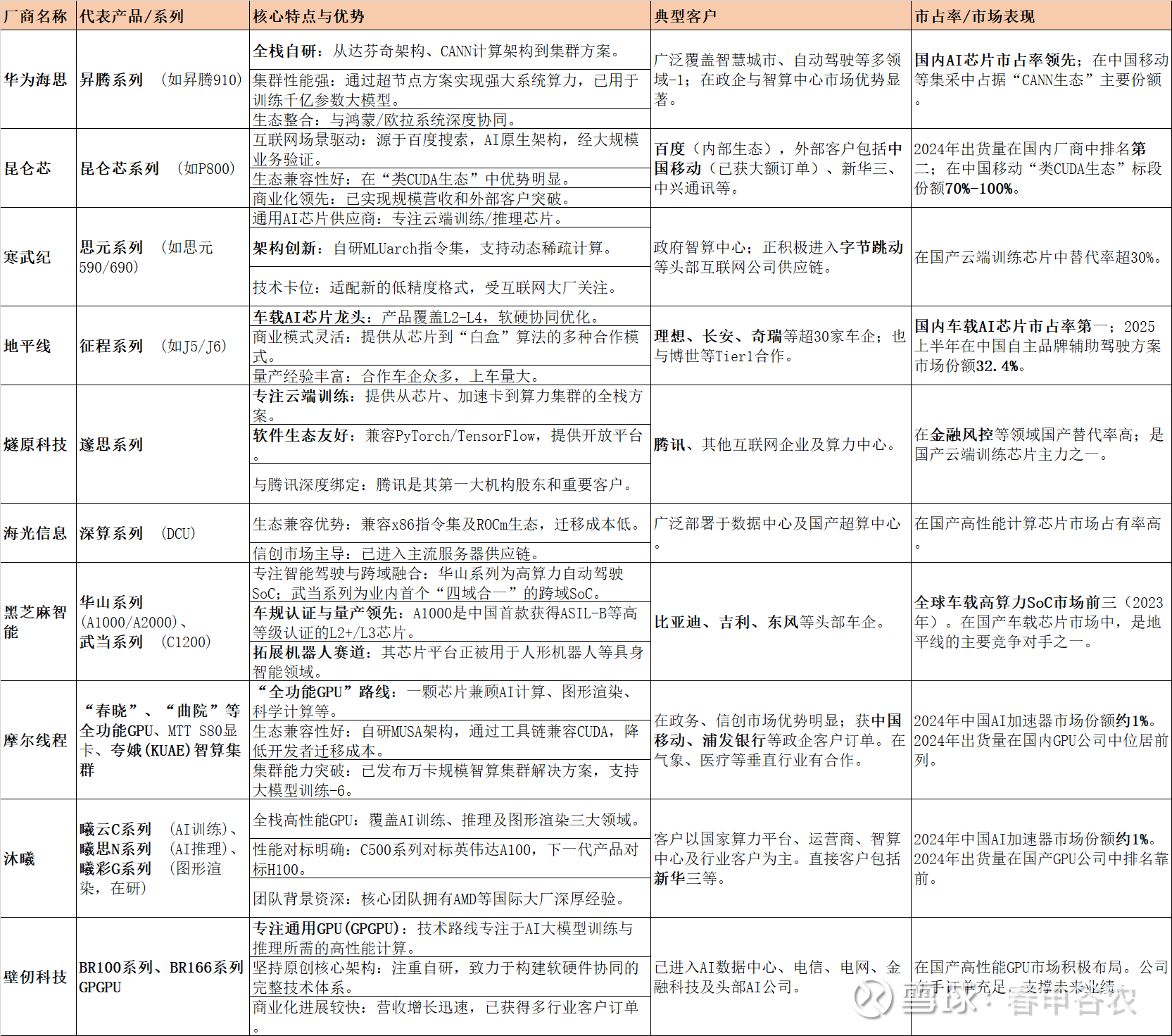 当前国产AI芯片领域的几大主流厂商