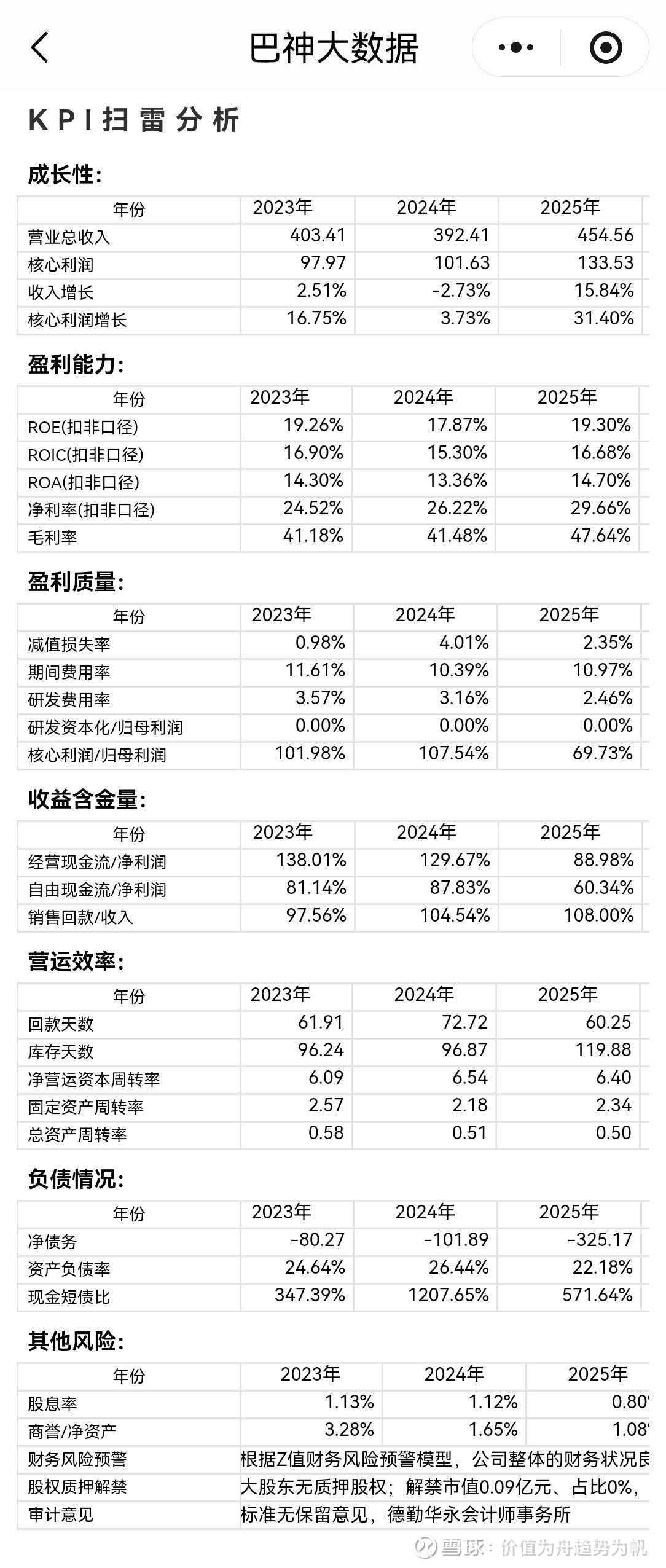 根据财报数据,公司2025年实现营业总收入454.56亿元,同比增长15.84%;归母净利润增长102.65%至191.51亿元,扣除非经常性损益后的核心净利润达到133.53亿元,同比增长31.40%。这一增速远超收入增速,显示出公司在提升运营效率和毛利率方面取得了显著成效。从盈利能力看,ROE(净资产收益率) 回升至19.30%,毛利率更是从2024年的41.48%跃升