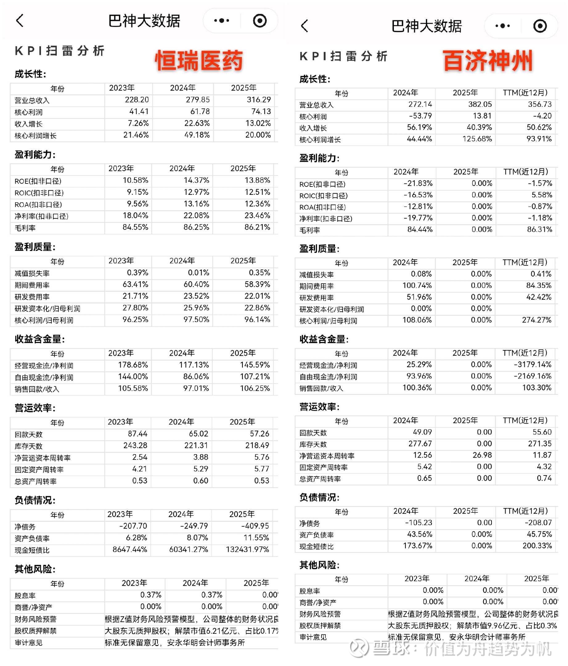 2025年的中国医药行业,最引人注目的事件莫过于“医药一哥”宝座的反复易主,$恒瑞医药(SH600276)$ vs $百济神州-U(SH688235)$ 。随着恒瑞医药公布2025年财报业绩(百济神州已公布2025年业绩快报、暂未公布2025年年报),本文对两家公司的业绩、估值、市值、产品结构、竞争优势等维度进行对标分析,以便对两家公司的优劣势进行比较分析。个人观点,仅供参考,不作为投资依据。