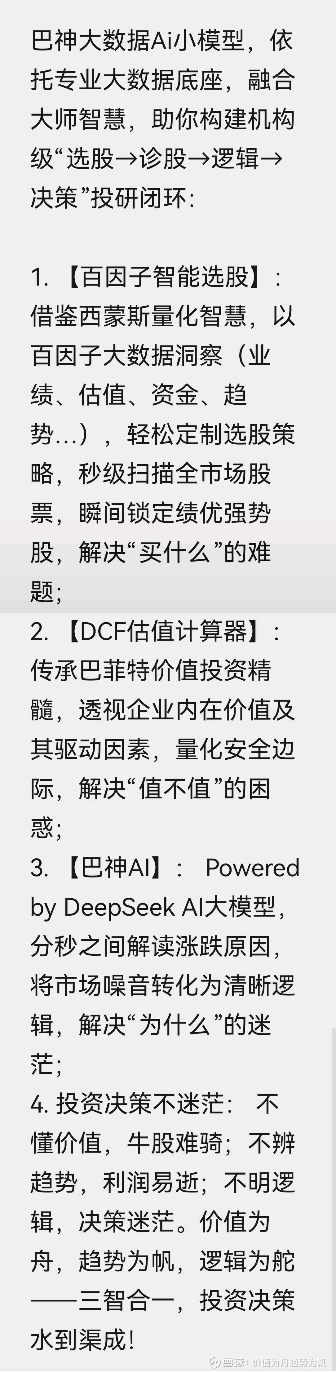 必须指出的是:DCF估值主要取决于未来预测业绩,【DCF估值计算器】提供了灵活的估值调整功能,只需指尖轻划调整几个关键估值参数(如收入利润增长率、折现率等),即可轻松定制专属DCF估值分析方案,预判你的预判,让你能像巴菲特在“超级明星股投资法则”说的那样思考企业的内在价值:“...不仅要在合理的价格上买入,而且买入公司的未来业绩还要与估计相符...”。从此,巴菲特说的内在价值分析,化作参数沙盒中的推演游戏——所谓伟大公司,其价值终可丈量!