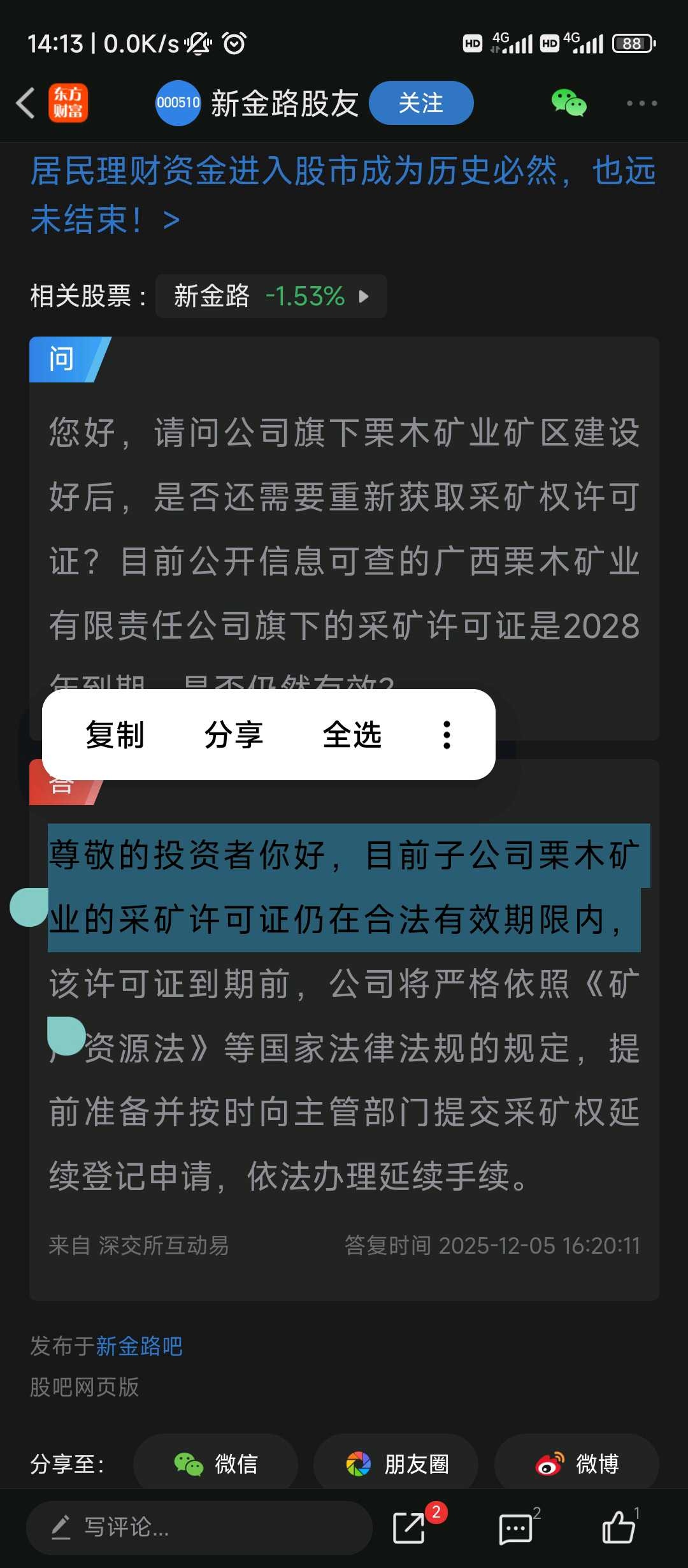 董秘:尊敬的投资者你好,目前子公司栗木矿业的采矿许可证仍在合法有效期限内,