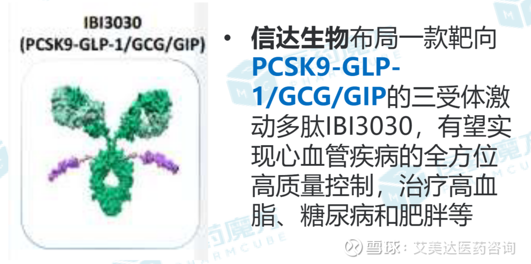 阿斯利康正在开展旗下小分子PCSK9抑制剂AZD0780与GLP-1联用的临床研究,而信达生物则是布局了IBI3030(PCSK9–GLP‑1/GCG/GIP)多受体激动多肽,目标直指“高血脂、糖尿病与肥胖”等全方位控制。