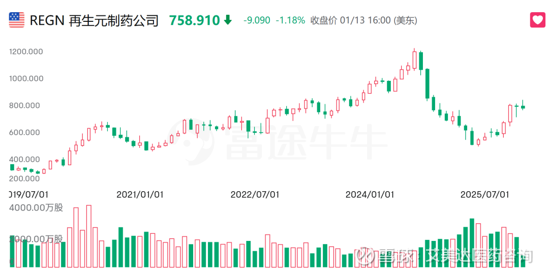 尽管度普利尤单抗在2024年已经成为自免领域的“药王”,但再生元的专利悬崖压力来自于另一款支柱产品阿柏西普,这种危机传导可以反映到公司股价上。