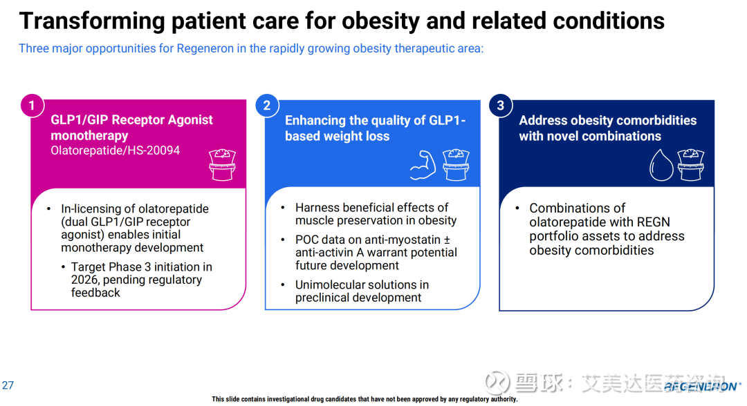 再生元一直以来都非常想介入减重领域,在“增肌减脂”myostatin/activin A通路以及潜在并发症管理(如LEPR通路)进行布局,可惜部分管线临床表现不尽人意,如今的表态,意味着翰森制药HS-20094将成为未来再生元减重领域的backbone管线,既然是重点开发对象,也是一根“救命稻草”。