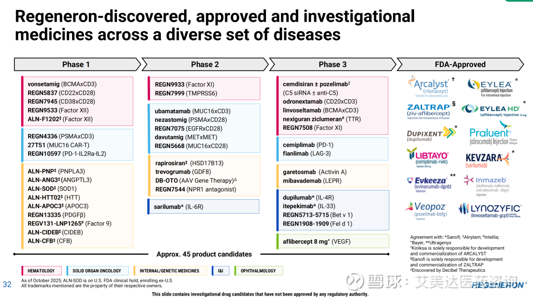 除了上述盘点的这些核心后期产品外,再生元还有靶向FXI、罕见病的一些管线,但可以看出这些产品要么就是市场叙事不够大或竞争格局激烈、要么就是再生元的分子竞争力差些。