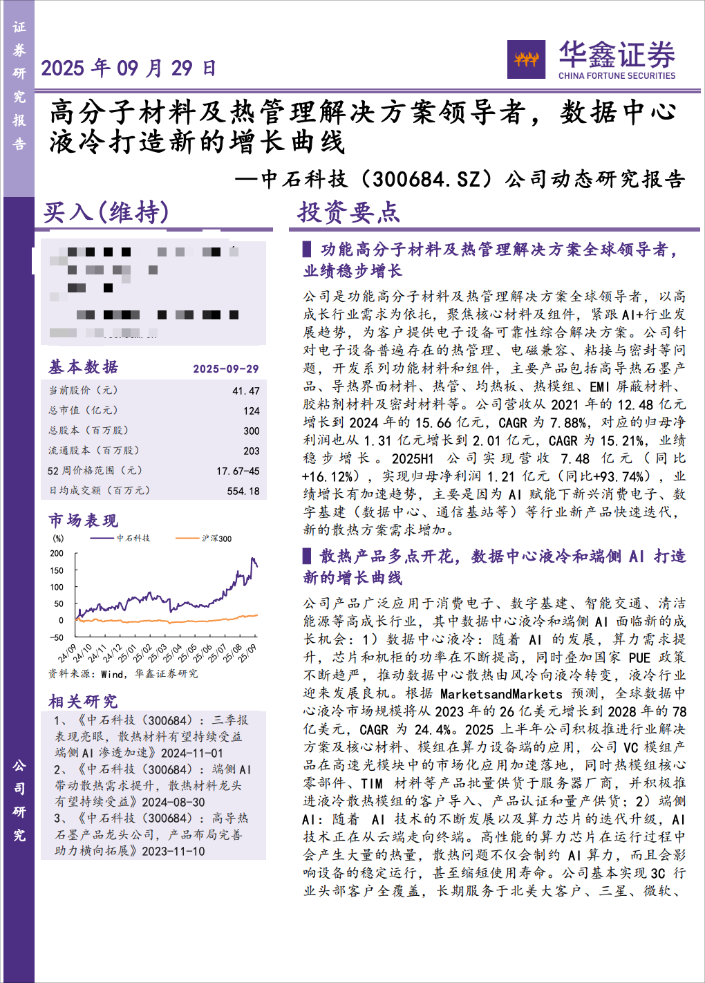 公司是全球领先的功能高分子材料及热管理解决方案提供商,产品包括各类导热、电磁兼容和密封材料,广泛应用于消费电子、数字基建等高成长行业。